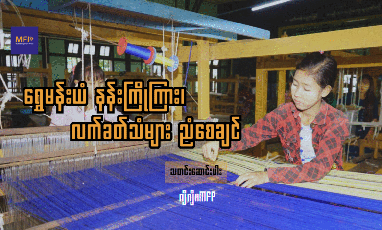 “စက်နဲ့ လုပ်ရတာ မဟုတ်ဘူး။ လက်နဲ့ လုပ်ရတာဖြစ်တဲ့အတွက် လုပ်သားမရှိရင် အလုပ်လုပ်လို့ မရဘူးပေါ့” လို့ လက်ရက်ကန်းလုပ်ငန်းရှင်က ပြောပါတယ်။