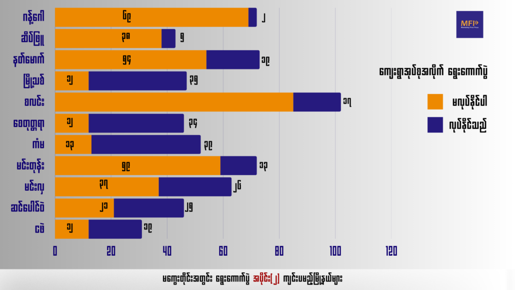 (စာရင်းဇယားတွေကို ရွေးကော်နဲ့ MiMU မှ အချက်အလက်များ ရယူနှိုင်းယှဉ်ထားသည်)