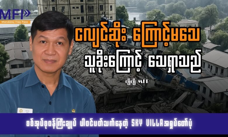 လူ့အသက်တွေ ရာနဲ့ချီ သေဆုံး၊ ပျောက်ဆုံးနေဆဲဖြစ်တဲ့ SKY Villa ကွန်ဒို ပြိုကျမှု အဖြစ်ဆိုးကြီးကို မဖြစ်ခဲ့သည့်အလား၊ ဘယ်သူ့မှာမှ တာဝန်မရှိသလို အားလုံးက နှုတ်ပိတ်ပြီး ကင်းလွတ် ခွင့်ရနေတဲ့ ဖြစ်ရပ်ကို စုံစမ်းကြည့်တဲ့အခါမှာ MFP က သံသယဖြစ်စရာ အလွန် ကောင်းတဲ့ အချက် တွေကို တွေ့ရပါတယ်။