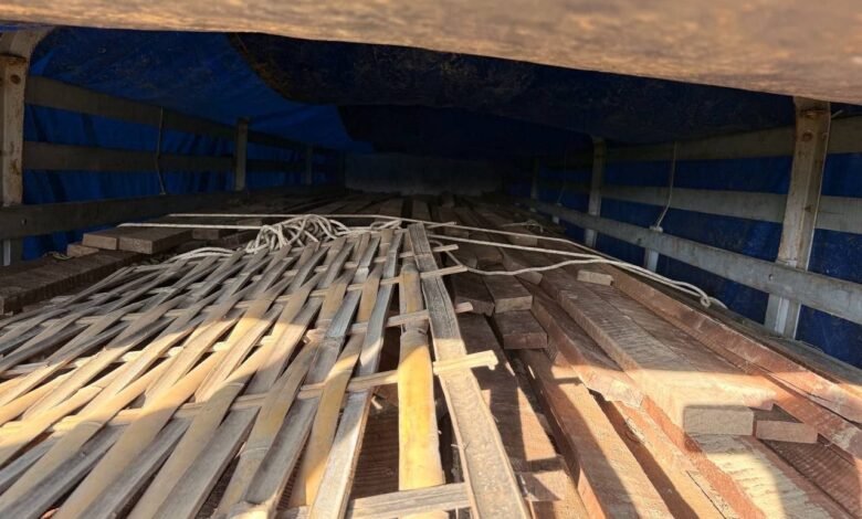 စက်တင်ဘာလ ၂၆ ရက်နေ့က ရေစကြိုနယ် လမ်းပိုင်းတစ်နေရာမှာ ကျွန်းသစ်တွေ သယ်ဆောင်လာတဲ့ ဆယ်ဘီးကားတစ်စီးကို ဖမ်းဆီးရမိတာဖြစ်ပြီး စစ်ဆေးမေးမြန်းတဲ့အချိန်မှာ စာရွက်စာတန်းတွေ အရ ဂန့်ဂေါမြို့နယ် ကျောတိုက်နယ် အုပ်ချုပ်ရေးအဖွဲ့ဆီက လေလံအောင်ခဲ့တဲ့ သစ်တွေကို ဦးအောင်ကိုလတ် နာမည်နဲ့စာရွက်စာတန်းတွေ တွေ့ရှိတာဖြစ်တယ်လို့ Southern YSO PDF အဖွဲ့တာဝန်ခံ ကိုအောင်မောင်းက ပြောပါတယ်။