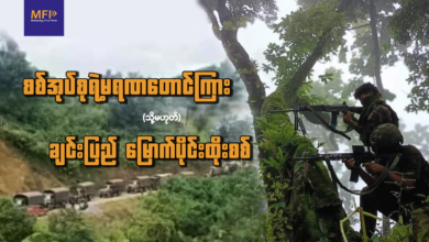 လေယာဉ်နဲ့ လိုက်လံဗုံးကြဲခံရလို့ ပြေးစရာမြေမရှိတော့တဲ့ စစ်ဘေးရှောင်ပြည်သူတွေ ထင်လင်း(MFP)၊ ရုပ်သံဆောင်းပါး အညာဒေသ တောကြိုအုံကြား၊ ချောင်းကြိုချပ်ကြားမှာ ပလစ်စတစ်မိုးကာ မိုးပြီး နေထိုင်ကြရတဲ့ မိသားစုတစ်စု။ အဲ့ဒီ မိသားစု အားလုံးက ညှိုးလျော်ဖျော့တော့နေကြပြီး ခန္ဓာကိုယ်မှာလည်း ဒဏ်ရာဒဏ်ချက်တွေ အပြည့်။…