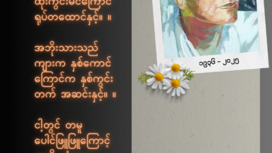 “ကဗျာဆိုတာ အသစ်” လို့ သူက အဓိပ္ပာယ်ဖွင့်ပါတယ်။ ဂျီဂျီ/MFP၊ နိုဝင်ဘာ −၂၃ “အဟောင်းကို ဖက်တွယ်ထားရင် ကျန်ခဲ့မှာပဲ။ အသစ်ကို တီထွင်ဖန်ဆင်းရမယ်” လို့ လက်ခံယူဆထားတဲ့ ကဗျာဆရာကြီး ကိုလေး(အင်းဝဂုဏ်ရည်)ဟာ နိုဝင်ဘာလ ၂၂ ရက်၊…