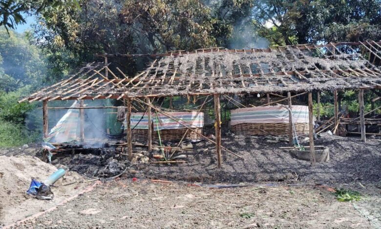 သပိတ်ကျင်းနယ်၊ မန္တလေး – မိုးကုတ် ကားလမ်းပေါ်က ချောင်းကြီးကျေးရွာကို စက်တင်ဘာ ၂၅ရက် မွန်းလွဲပိုင်းမှာ စစ်အုပ်စုက တိုက်လေယာဉ် နှစ်စီးနဲ့ ဗုံးကြဲခဲ့စဉ်/Photo – Vomdy