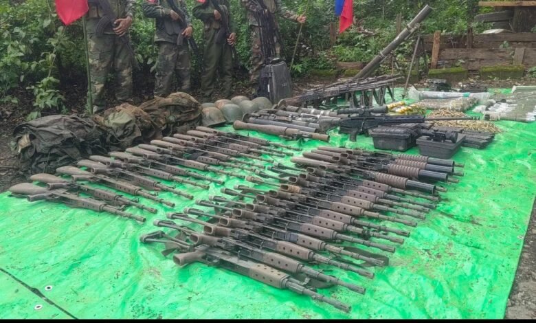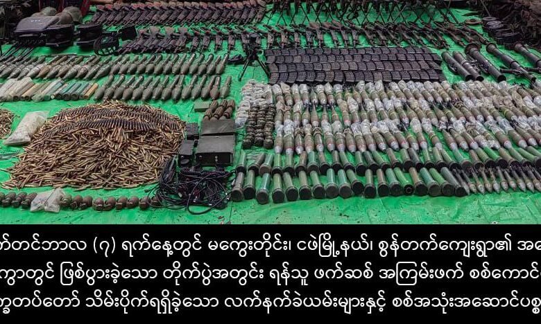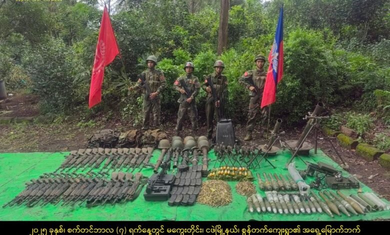 စက်တင်ဘာလက စွန်တက်ရွာတိုက်ပွဲမှာ စစ်အုပ်စုစခန်းကို တိုက်ခိုက်ပြီးနောက် သိမ်းဆည်းရမိထားတဲ့ စစ်လက်နက်တွေကို AA ထုတ်ပြန်ထားပုံ။