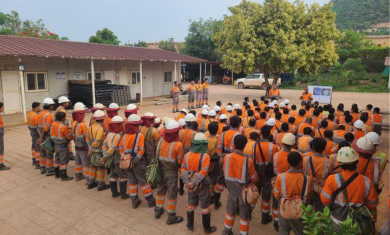 လက်ပံတောင်းတောင်ကို ဖြိုကာ ကြေးနီတူးနေတဲ့ တရုတ်ကုမ္မဏီ ဝန်ထမ်းတွေ/Photo – မြန်မာဝမ်ပေါင် ကုမ္မဏီ
