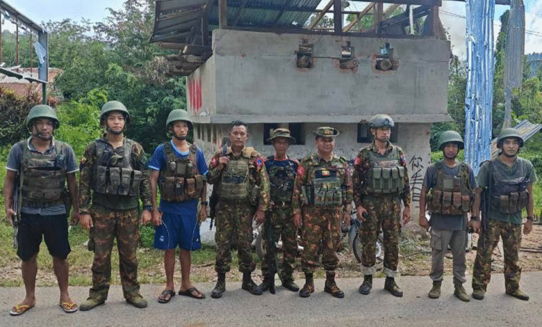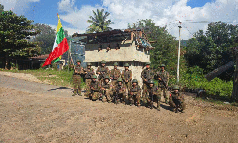 သပိတ်ကျင်းနယ်၊ မန္တလေး – မိုးကုတ်လမ်း၊ ဖော့တောလမ်းဆုံကို ပြန်လည်ထိန်းချုပ်ပြီး အောင်ပွဲခံနေတဲ့ စစ်အုပ်စု/Photo – စစ်အုပ်စု