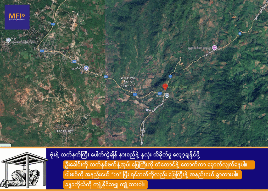 မန္တလေးတိုင်း၊ သပိတ်ကျင်းမြို့နယ်၊ မန္တလေး – မိုးကုတ်လမ်း၊ ဖော့တောလမ်းဆုံကို ပြန်လည် သိမ်းယူ ထိန်းချုပ်နိုင်တဲ့ စစ်အုပ်စုက မိုးကုတ်မြို့ဘက် ဆက်လက် စစ်ကြောင်းထိုးနေပြီး ဖော့တောကျေးရွာ အထက် နှစ်မိုင်ခန့်အကွာ ညောင်ပင်သာ ကျေးရွာအနီးမှာ တိုက်ပွဲ အပြင်းအထန် ဖြစ်ပွားနေတယ်လို့ စစ်ရေးသတင်းရင်းမြစ်တွေက MFP ကို ပြောပါတယ်။