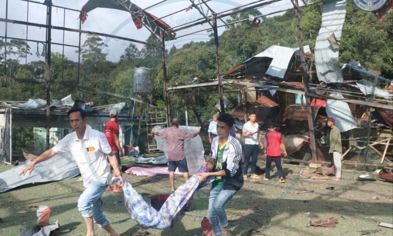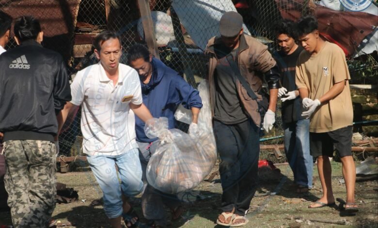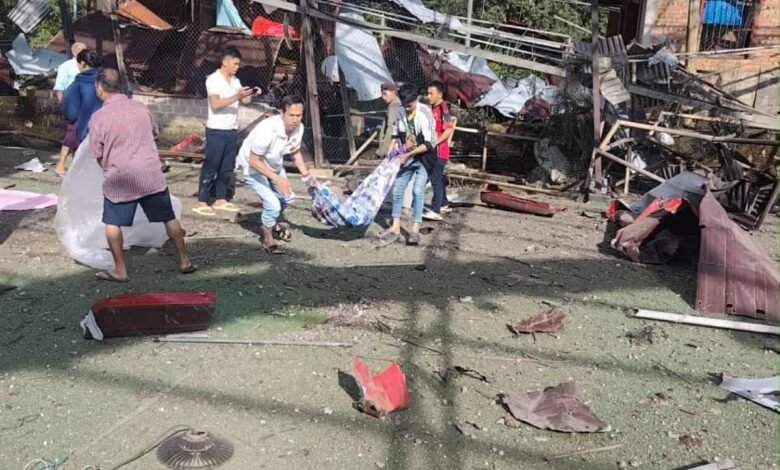 မိုးကုတ်မြို့နဲ့ သပိတ်ကျင်းနယ် ဇရပ်ကွင်းရွာကို စစ်အုပ်စုက တိုက်လေယာဉ်၊ ဒရုန်းတွေနဲ့ ဗုံးကြဲသတ်လို့ သေဆုံး၊ ဒဏ်ရာရသူတဲ့ ကလေးသူငယ်တွေနဲ့ အပျက်အစီးတွေ/Photo – ပေးပို့၊ TWO, TNLA