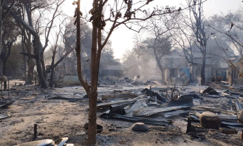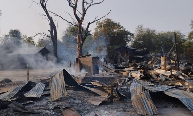 ချောင်းဦးနယ်ထဲ လူသတ်၊ လုယက်၊ မီးရှို့မှုတွေ ဦးဆောင်ကျူးလွန်နေတဲ့ မင်းအောင်လှိုင် သစ္စာခံတွေနဲ့ ခင်မွန်ရွာကို စစ်အုပ်စု မီးရှို့ဖျက်ဆီးစဉ် (ပုံဟောင်း)/Photo – CJ၊ စစ်အုပ်စု