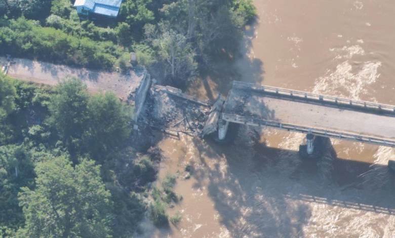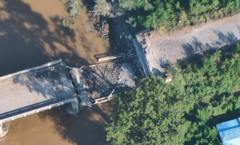 မန္တလေး – မတ္တရာ – စဉ့်ကူး – မိုးကုတ် ကားလမ်းပေါ်က ဖျက်ဆီးခံရတဲ့ ကျောက်စရစ်ကုန်းတံတား (တံငါတံတား)/Photo – စစ်အုပ်စု