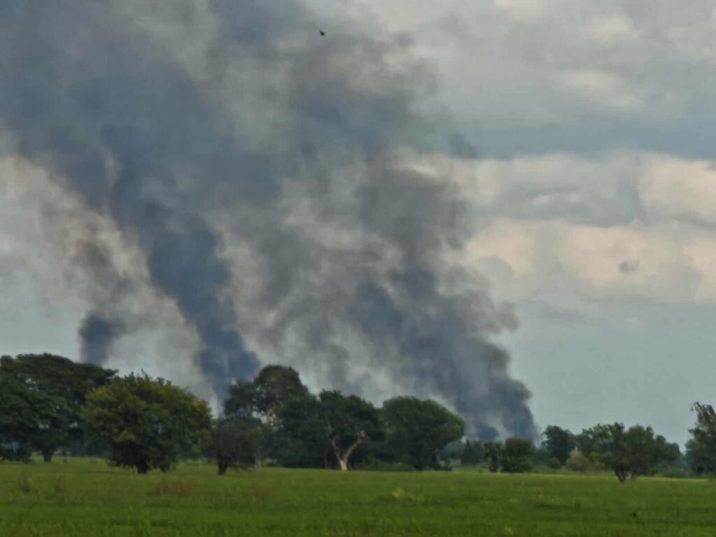 ရွှေဘို – မန္တလေးလမ်း၊ ရွှေဘိုနယ် နှောပင်ရွာနဲ့ ဝက်လက်နယ် တမာကုန်းကျေးရွာတွေကို စစ်အုပ်စုက စီးနင်းလုယက် မီးရှို့ဖျက်ဆီးနေစဉ်/Photo – စစ်အုပ်စု၊ CJ