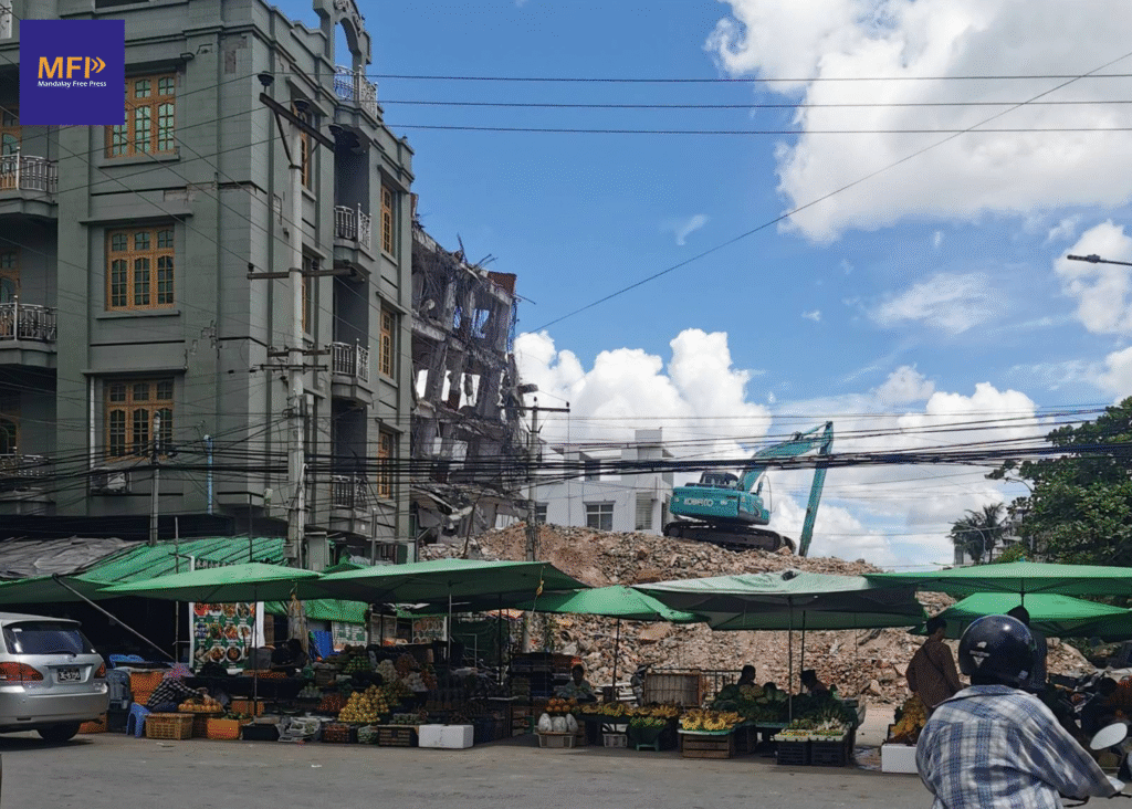 မန္တလေးမြို့ပေါ်က ငလျင်ဒဏ်သင့် အဆောက်အအုံတစ်ခု/Photo – MFP