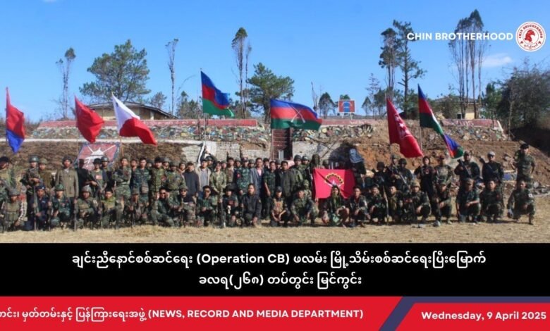 ဖလမ်းမြို့သိမ်းတိုက်ပွဲအပြီး တွေ့ရတဲ့ ချင်းညီနောင် တပ်ဖွဲ့ဝင်တွေနဲ့ စစ်ရေးလေ့ကျင့်၊ တိုက်ပွဲဝင်နေတဲ့ CDF-Mindat တပ်ဖွဲ့ဝင်တွေ/Photo – CDF-Mindat