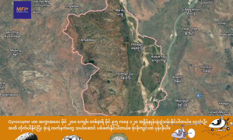 မကွေးတိုင်း ရေစကြိုမြို့နယ်က ဟင်္သာရွာကို ဒီဇင်ဘာလ ၁၂ ရက်နေ့ ည ၉ နာရီခန့်က စစ်အုပ်စုက စက်တပ်လေထီးနဲ့ ဗုံးကြဲတာကြောင့် ပြည်သူနှစ်ဦး သေဆုံးခဲ့တယ်လို့ ဒေသခံသတင်းရင်းမြစ်က MFPကို ပြောပါတယ်။