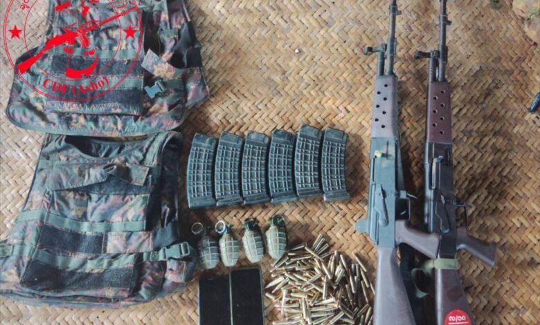 မကွေးတိုင်း၊ ငဖဲမြို့နယ် နတ်ရေကန် လေကြောင်းရန်ကာကွယ်ရေးတပ်စခန်း (လမ်းဟောင်း)အနီးက ရှေ့တန်းစစ်မြေပြင်မှာရှိတဲ့ စစ်အုပ်စုတပ်သားသုံးဦး လက်နက်ခဲယမ်းတွေနဲ့အတူ ချင်းကာကွယ်ရေးတပ်-အရှို (CDF-Asho)ထံ အလင်းဝင်ရောက်လာတယ်လို့ မနေ့က သတင်းထုတ်ပြန်ပါတယ်။