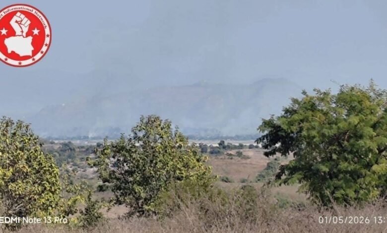 ကြက်တူရွေးကျေးရွာကို ဇန်နဝါရီလ ၅ ရက်မှာ စစ်အုပ်စုမီးရှို့ဖျက်ဆီးနေပုံ။