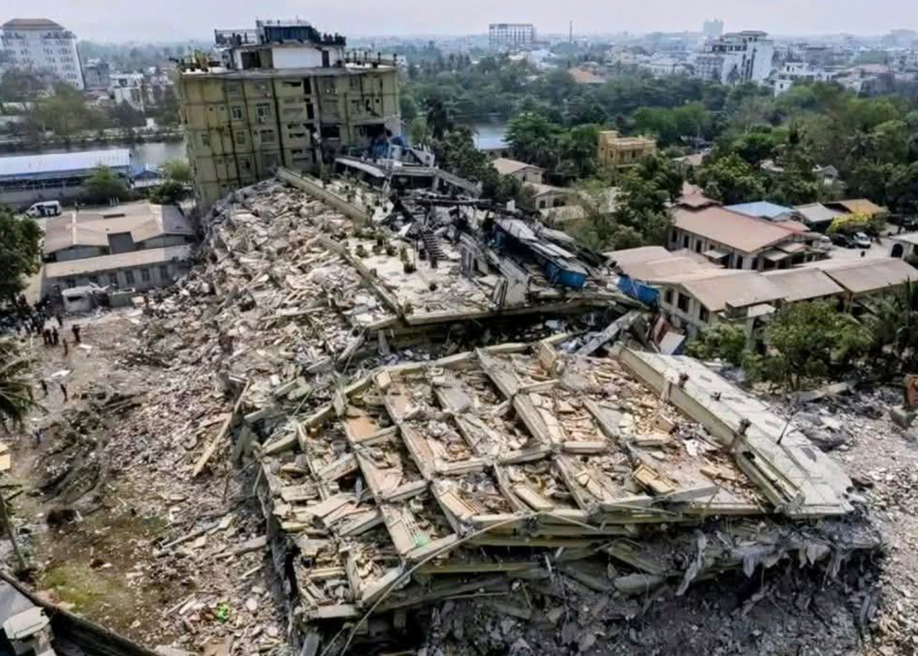 ငလျင်ကြောင့် ပြိုကျကာ အနည်းဆုံး လူ ၂၀၀ ကျော် သေဆုံးခဲ့တဲ့ မန္တလေးမြို့ Sky Villa ကွန်ဒို/Photo – စစ်အုပ်စု