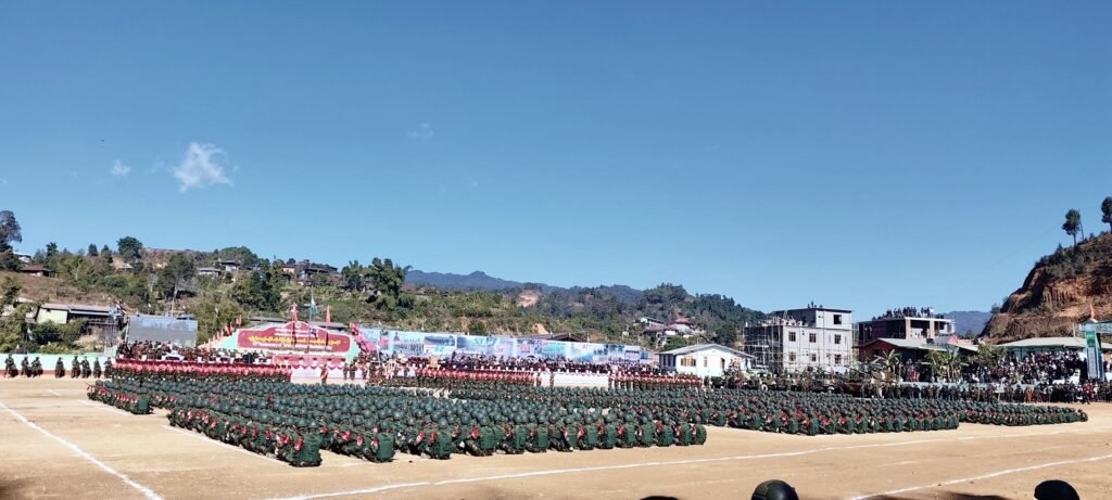 PSLF/TNLA ဥက္ကဌ တားအိုက်ဘုန်းနဲ့ စစ်ရေးပြနေတဲ့ TNLA တပ်တွေ/Photo – TNLA၊ MP၊ CJ