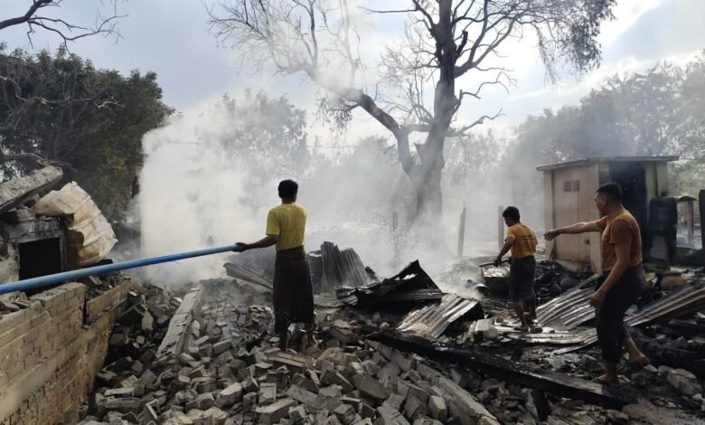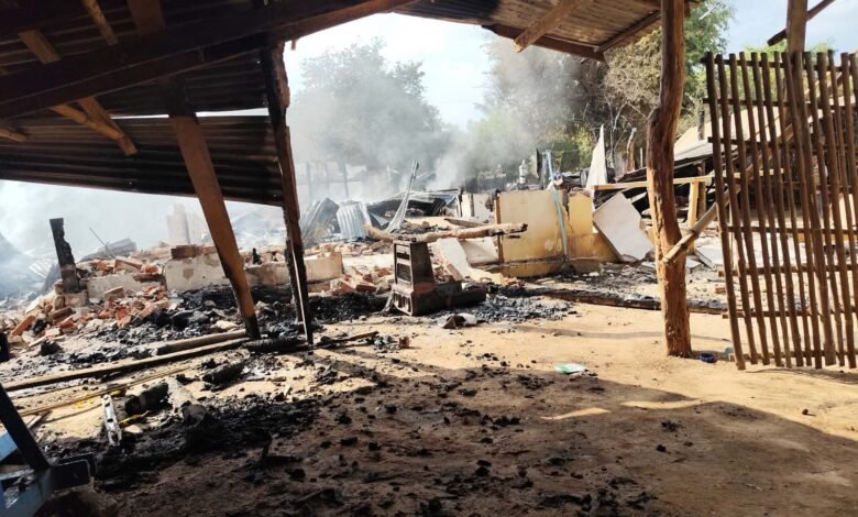 ဓာတ်ပုံ – ပေးပို့၊ စစ်အုပ်စုမီးရှို့ဖျက်ဆီးထားတဲ့ ကိုင်းကျေးရွာကို မြင်တွေ့ရပုံ၊