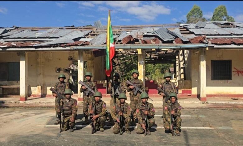 ခလရ ၁၄၈ အပါအဝင် သပိတ်ကျင်းနဲ့ မိုးကုတ် အစပ်ရှိ လက်ကျန် စစ်ရှုံး စစ်စခန်းတွေကို စစ်အုပ်စုက ပြန်သိမ်းယူပြီးနောက် အောင်ပွဲခံနေစဉ်/Photo – စစ်အုပ်စု