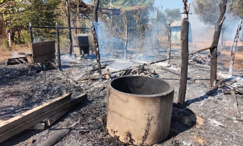 ဓာတ်ပုံ- ဒီပဲယင်းမြို့နယ် ပြည်သူ့အုပ်ချုပ်ရေးအဖွဲ့၊ ဒီပဲယင်းမြို့နယ်အတွင်းက ဇန်နဝါရီလ ၁၉ ရက်မှာ လေကြောင်းတိုက်ခိုက်ခံရပုံ။
