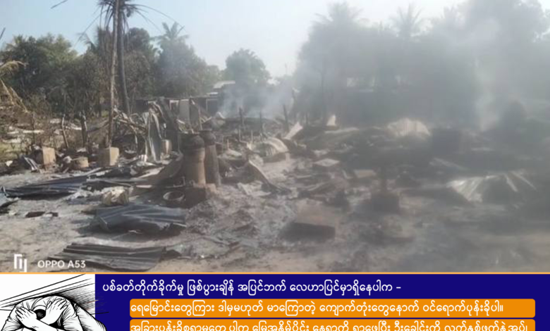 စလင်းနဲ့ ဆင်ဖြူကျွန်းကြား ရွာတွေကို စစ်အုပ်စု စစ်ကြောင်းထိုး၊ လူသတ်၊ မီးရှို့နေ၊