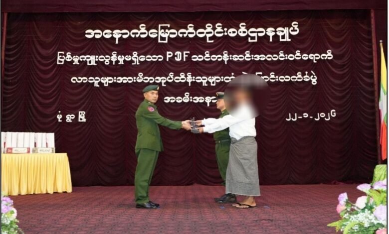 ဇန်နဝါရီ ၂၃ရက် မနေ့က မန္တလေး လပခ မှာ PDF အဖွဲ့ဝင် အမျိုးသား ၁၄၁ ဦးနဲ့ အမျိုးသမီး ရှစ်ဦး၊ စုစုပေါင်း ၁၄၉ ဦးဟာ သေနတ် ၁၄ လက်၊ ခဲယမ်းတွေနဲ့အတူ အလင်းဝင်လို့ စစ်အုပ်စုက ထောက်ပံ့ငွေပေးပြီး မိဘအုပ်ထိန်းသူထံ လွှဲပြောင်းပေးလိုက်တယ်လို့ စစ်လော်ဘီတွေက ဖော်ပြပါတယ်။