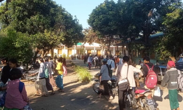 “အထက-၃ ပြန်ဖွင့်လိုက်တော့ အနီးအနားစစ်ရှောင်နေတဲ့သူတွေက ကျောင်းသားရှိတဲ့ မိသားစုတွေ ပြန်ဝင်ကြတာပေါ့။ ကလေးတွေက စာမေးပွဲဖြေဖို့ကနီးနေတော့ မိဘတွေကကျောင်းပို့ကြတာ။ မိဘတွေက အရှေ့မှာထိုင်စောင့်ကြတယ်။ ကျောင်းလွှတ်ချိန်ပြီးရင်တော့ မြို့ထဲလူသွားလူလာမရှိတော့ဘူး။ ကျောင်းသားကတော့ သုံးရာလောက် ပြန်တက်နေတယ်လို့ ကြားတယ်။ လက်နက်ကြီးကတော့ တချက်တချက်ပစ်သေးတယ်တဲ့၊ စစ်အုပ်စုကတော့ သူတို့စခန်းတွေအထဲကနေ မထွက်ကြဘူးတဲ့”
