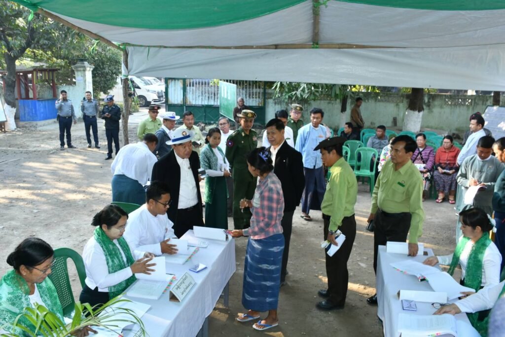 ပုသိမ်ကြီးနယ်ထဲ အယောင်ပြ ရွေးကောက်ပွဲ လုပ်ဖို့ ပြင်ဆင်နေတဲ့ စစ်အုပ်စုကို ပြီးခဲ့တဲ့ ရက်ပိုင်းက တွေ့ရစဉ်/Photo – စစ်အုပ်စု