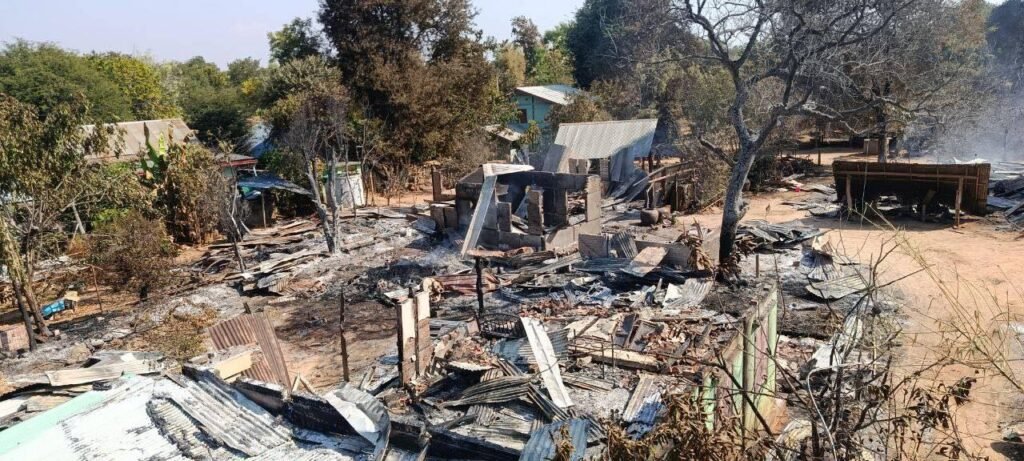 ကျောက်ပန်းတောင်းမြို့နယ်၊ ဘုရားကြီးကုန်းကျေးရွာကို စစ်အုပ်စုက စီးနင်းလုယက် မီးရှို့ဖျက်ဆီးခဲ့စဉ်/Photo – ကျောက်ပန်းတောင်းလူငယ်ကွန်ရက်