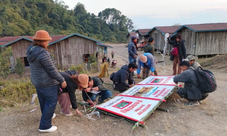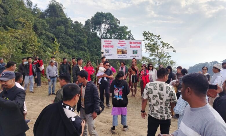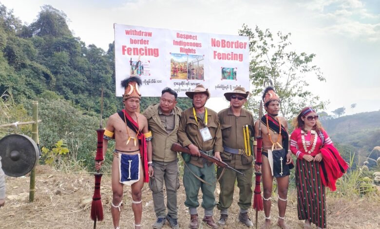အိန္ဒိယ – မြန်မာ နှစ်နိုင်ငံ နယ်စပ်ခြံစည်းရိုးခတ်မဲ့ အစီအစဉ် ကန့်ကွက်ဆန္ဒပြနေတဲ့ နာဂ တိုင်းရင်းသားတချို့/Photo – ညီညွတ်သောတန်ရှန်းနာဂကောင်စီ (United Thangshang Naga Council)
