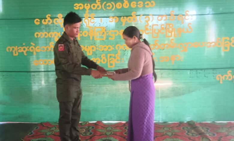 မော်လိုက်ခရိုင် PDF အမှတ် ၃တပ်ရင်းက ကျဆုံးတဲ့ တော်လှန်ရေး ရဲဘော်တွေအား ဂုတ်ပြုတဲ့ အနေနဲ့ ကျန်ရစ်သူ မိသားစုကို ဂုဏ်ပြုငွေ ချီးမြှင့်ထောက်ပံ့စဉ်/Photo – မော်လိုက်ခရိုင် အမှတ် ၃တပ်ရင်း