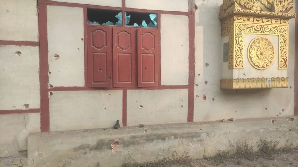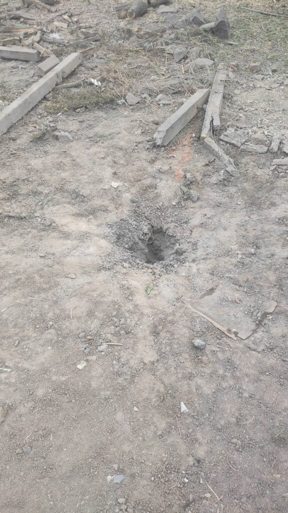 ဒီပဲယင်းနယ် အရှေ့ခြမ်း၊ ညောင်လှရွာကို စစ်အုပ်စုက ဗုံးကြဲတိုက်ခိုက်အပြီး တွေ့ရစဉ်/Photo – RDDF