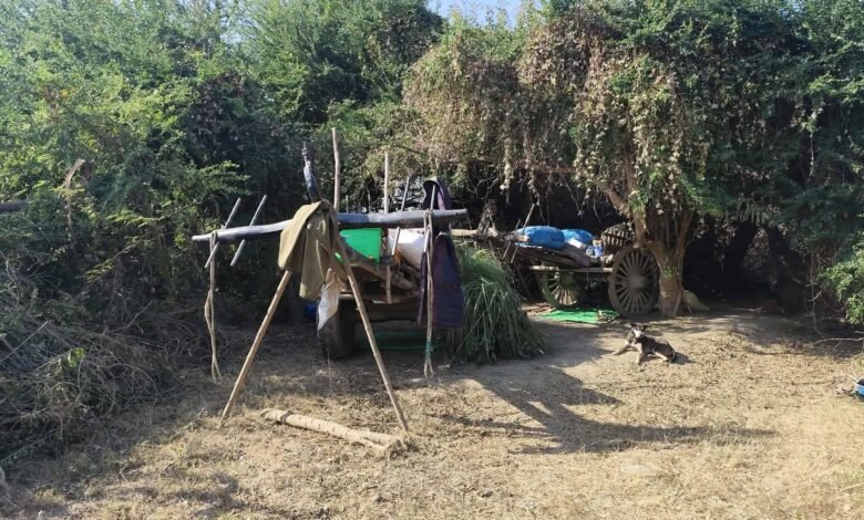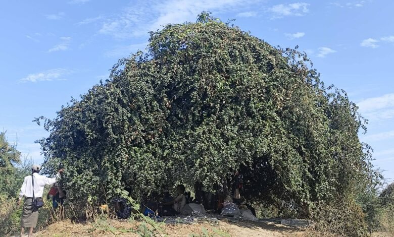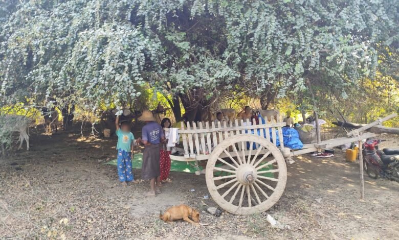 မြင်းခြံနယ်ထဲ စစ်အုပ်စု ရွာစဉ်ပတ်မွှေ စစ်ကြောင်းထိုးကာ လူသတ်၊ လုယက်၊ မီးရှို့နေလို့ စစ်ဘေးရှောင် ထွက်ပြေးနေရတဲ့ ပြည်သူတွေ/Photo – မင်းစစ်နိုင်