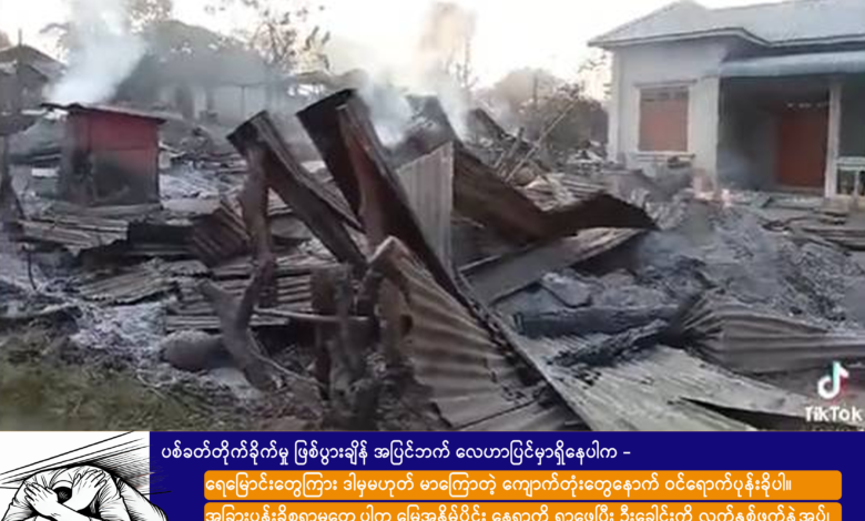 မီးရှို့ပြီး ပြန်မထွက်ဘဲ ရွာထဲ အထိုင်ချတပ်စွဲလို့ ရွာ ၄၀ ကျော် ထွက်ပြေးနေရ၊