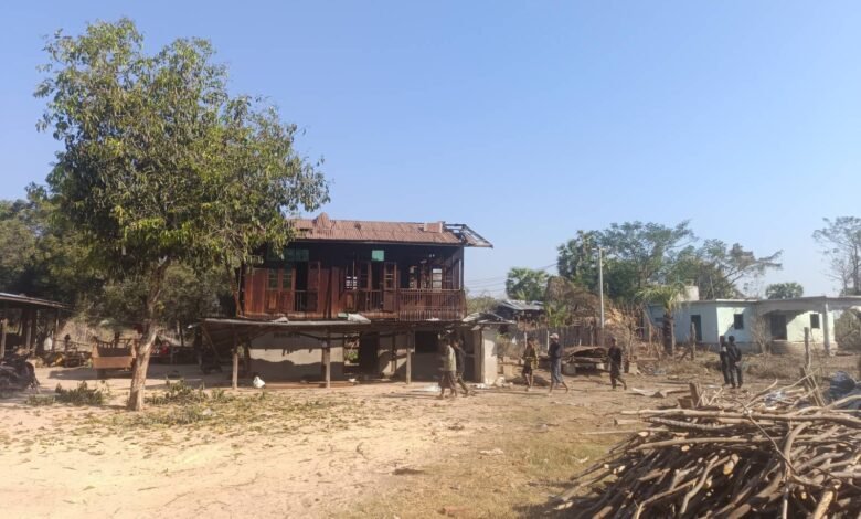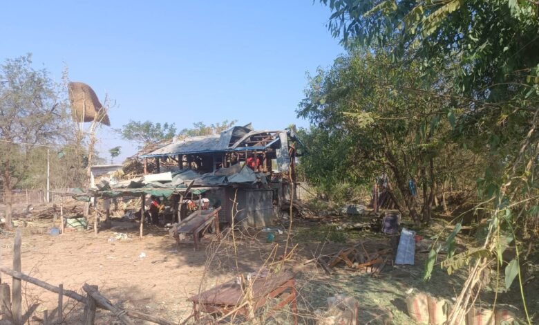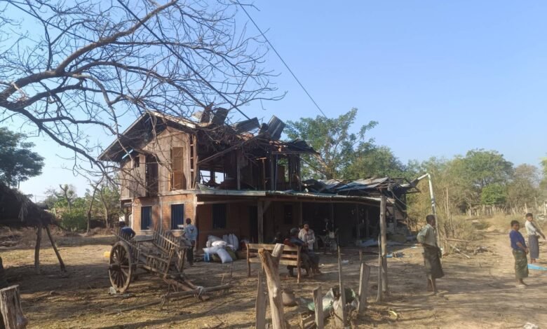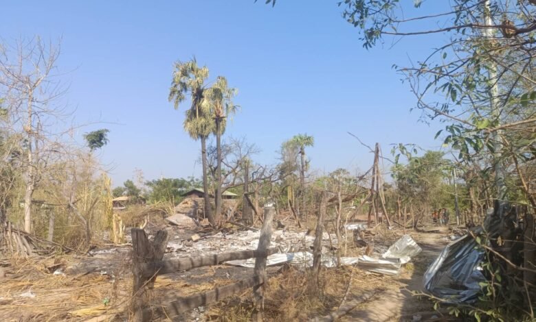 ဒီပဲယင်းနယ် ဘုတ္ထန်းကျေးရွာကို စစ်အုပ်စုက အကြောင်းမဲ့ ဗုံးပတ်ကြဲလို့ နေအိမ် ၃၀ ကျော် ပျက်စီးကာ ပြည်သူတစ်ဦး သေဆုံးခဲ့စဉ်/Photo – ဒီပဲယင်း ပအဖ