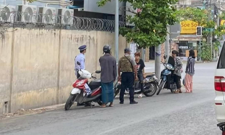 မန္တလေးမြို့ပေါ် လမ်းသွားလမ်းလာ ပြည်သူကို တားဆီးစစ်ဆေး ငွေညှစ်နေတဲ့ အာဏာသိမ်း စစ်အုပ်စုကို ပြီးခဲ့တဲ့ လပိုင်းက တွေ့ရစဉ်/Photo – CJ
