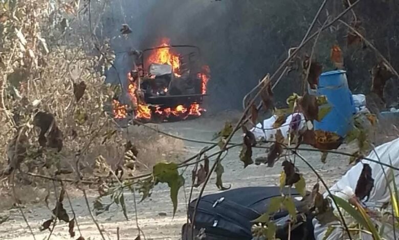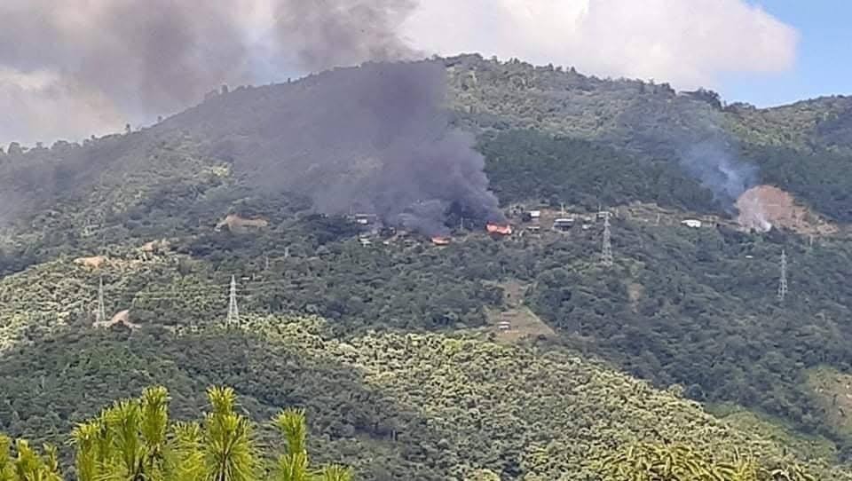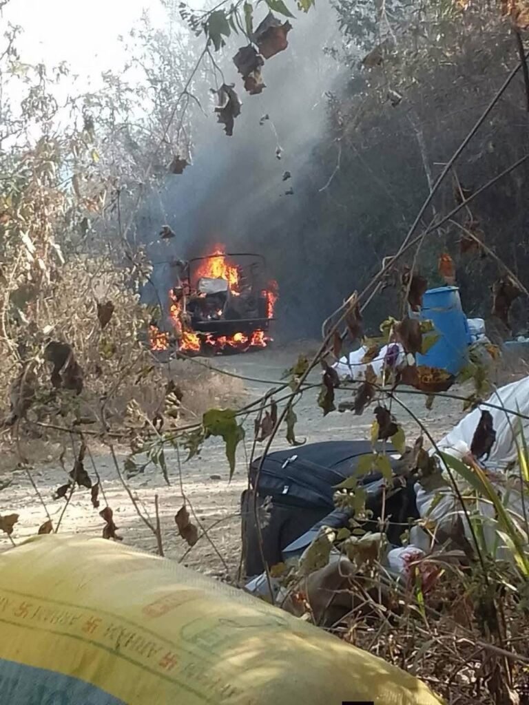 ဖေဖော်ဝါရီ ၁၈ ရက်က ချင်းပြည်၊ ဖလမ်းမြို့နယ်၊ ခွန်းလီကျေးရွာအနီး လမ်းပေါ်မှာ ကုန်ကားတစ်စီးကို စစ်အုပ်စု ဒရုန်းနဲ့ ဗုံးကြဲလို့ မီး‌လောင်နေမှုနဲ့ ဒီကနေ့ ကျရောက်တဲ့ ချင်းအမျိုးသားနေ့မှာ ဖလမ်းနယ် ကျေးရွာတွေကို စစ်အုပ်စု ဗုံးပတ်ကြဲလို့ နေအိမ်တွေ မီးလောင်နေစဉ်/Photo – CJ