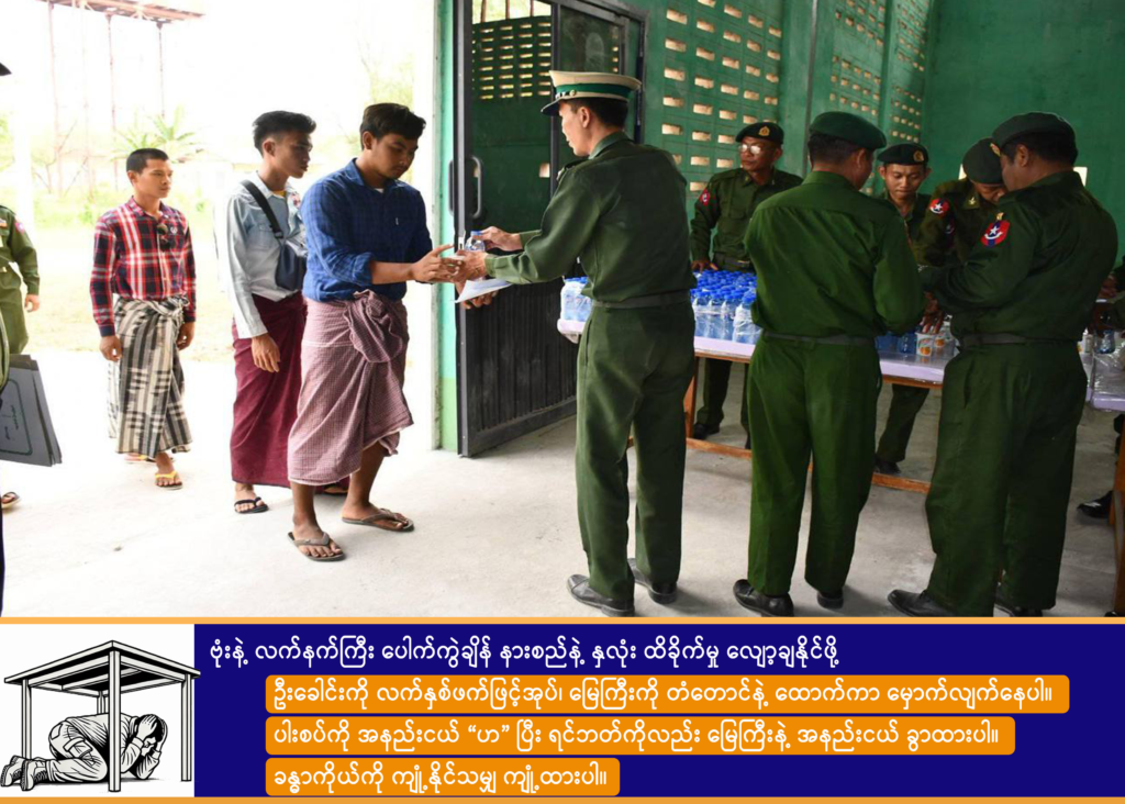 စစ်အုပ်စုဟာ ပေါ်တာဆွဲ ဖမ်းဆီးလို့ရသမျှ လူငယ်တွေထဲက ငွေနဲ့လာရွေးထုတ်သူကို ပြန်လွှတ်ပေးကာ ငွေမပေးနိုင်သူကို ရက်တို စစ်သင်တန်းတက်ခိုင်းပြီးနောက် တိုက်ပွဲဖြစ်တဲ့ နေရာတွေဆီပို့လွှတ်ကာ အသေခံ စစ်သားအဖြစ် အသုံးချနေတာ ဖြစ်ပါတယ်။