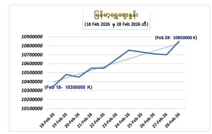 ဖေဖေါ်ဝါရီ ၁၈ရက်ကနေ ၂၈ရက်အထိ ၁၀ရက်တာအတွင်း ပြည်တွင်း ရွှေစျေးနှုန်းပြဇယား၊