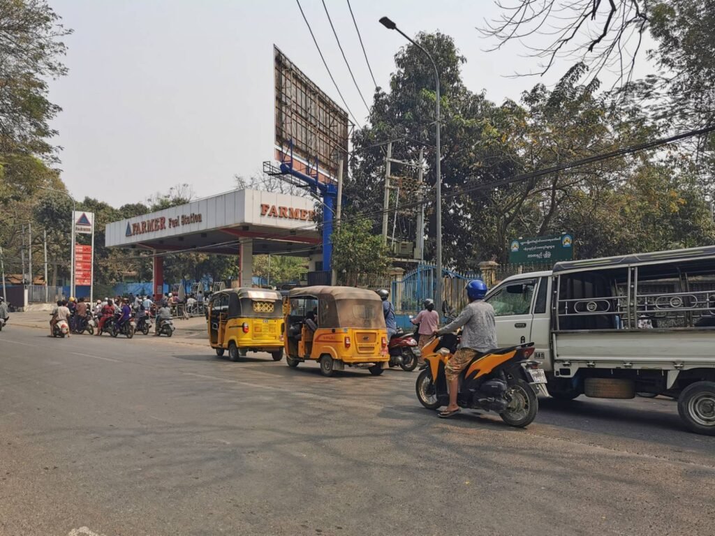မန္တလေးက ဆိုင်တွေမှာ စက်သုံးဆီ လိုသလောက် ဝယ်မရဘဲ တန်းစီရလို့ ဓာတ်ဆီ တစ်လီတာ ကျပ် ၅၀၀၀ နဲ့ ဝယ်သုံးနေရ၊
