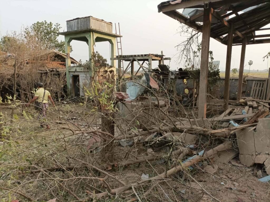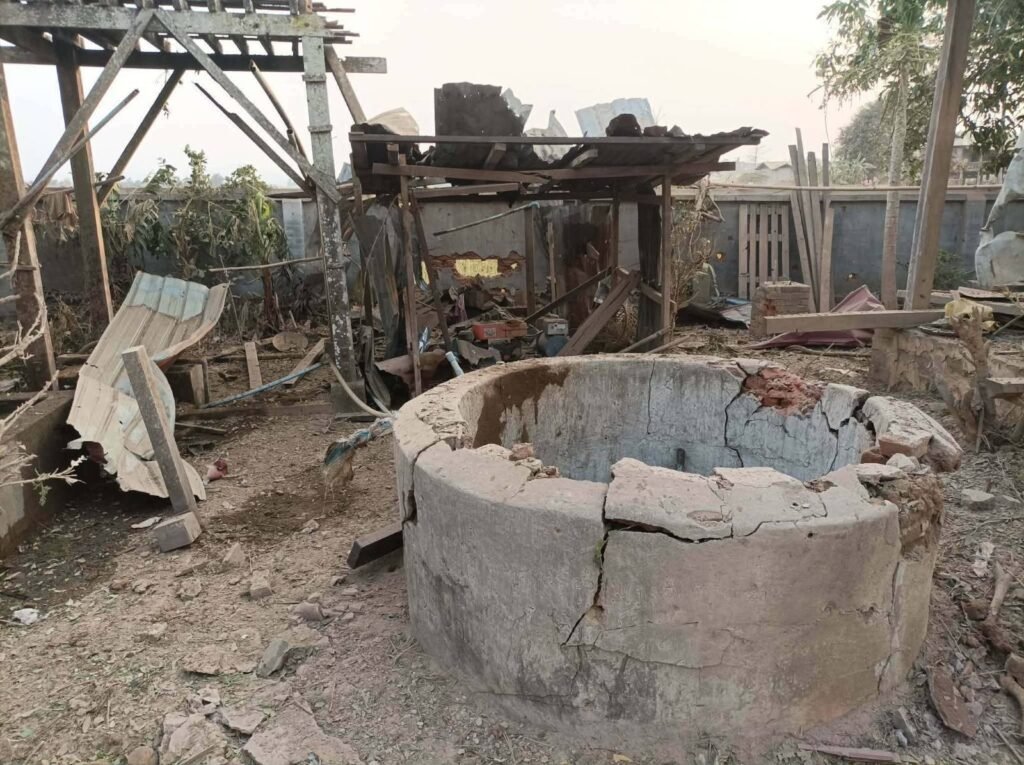 ကောလင်းနယ် အရှေ့ခြမ်း၊ ရွှေဘို – မြစ်ကြီးနား ကားလမ်းပေါ်ရှိ ကချင်ကုန်းကျေးရွာကို မတ်လ ၅ရက် ညနေပိုင်း စစ်အုပ်စုက တိုက်လေယာဉ်နဲ့ ဗုံးကြဲခဲ့စဉ်/Photo – ကောလင်း ပအဖ