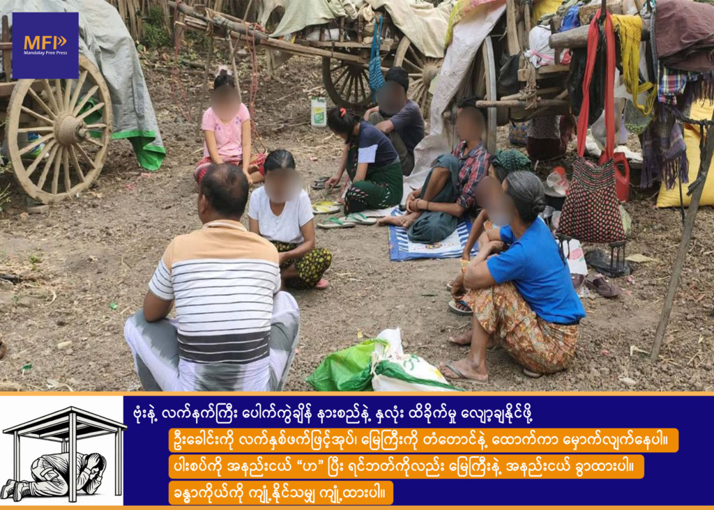 “စစ်ကြောင်း မြို့ထဲရောက်သွားလို့ နေ့ခင်း အိမ်ပြန်ကပ်တာ၊ ညကျ လက်နက်ကြီးထုလို့ ပြန်ပြေးရတယ်” လို့ ဒေသခံ စစ်ရှောင်အမျိုးသမီးတစ်ဦးက MFP ကို ပြောပါတယ်။