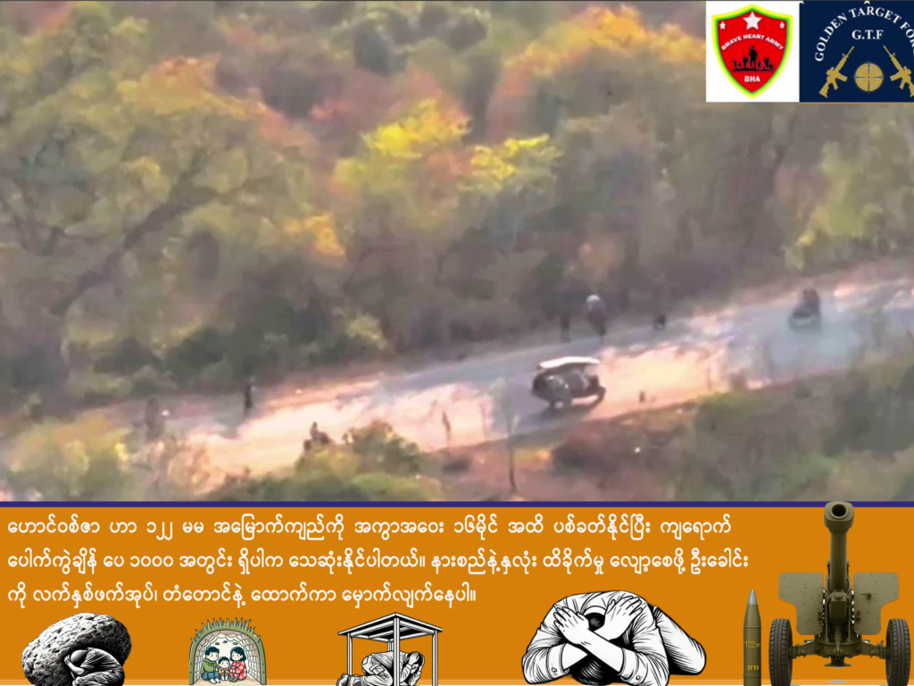မုံရွာအနီး ကားလမ်းပေါ် စစ်အုပ်စုကို တိုက်ခိုက်ရာ တစ်ယောက် သေ၊ လက်နက်ရ၊ စစ်အုပ်စုက ရွာကို စီးနင်းကာ ပြည်သူတွေကို ပတ်သတ်၊ အိမ်မီးရှို့၊