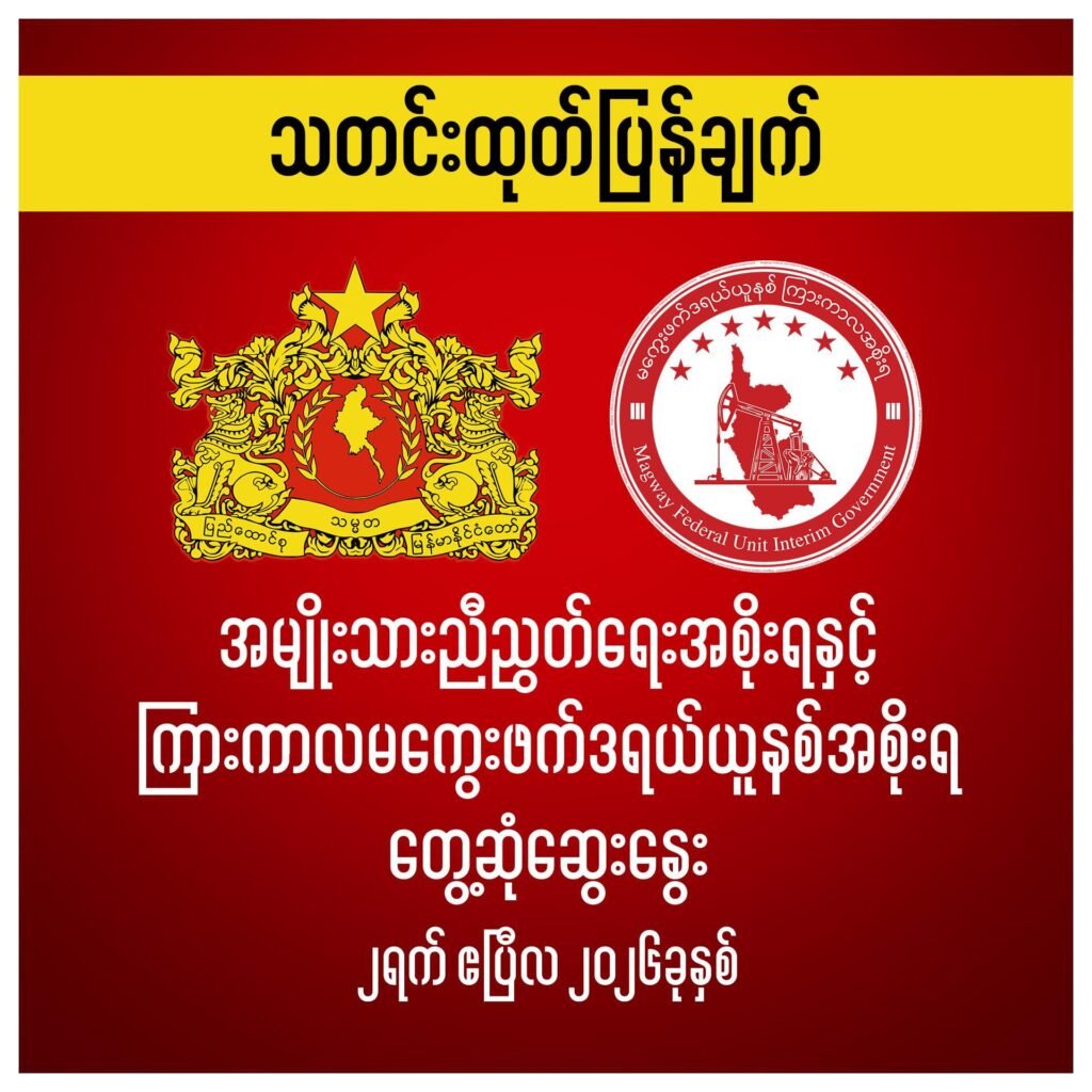 ရေနံတွင်းကိစ္စ NUG နဲ့ မကွေးယူနစ်အစိုးရတို့ ဆွေးနွေးပွဲ အပြုသဘောဆောင်ဟုဆို၊