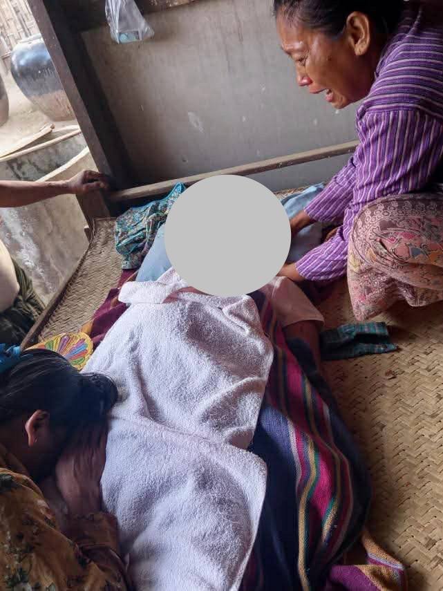 ညောင်ဦးနယ်မှာ အာဏာသိမ်း စစ်အုပ်စုက ရွာကို လက်နက်ကြီး ထုလို့ ထိမှန်သေဆုံးတဲ့ ကျောင်းဆရာမနဲ့ ပြည်သူ အမျိုးသမီးတို့ကို တွေ့ရစဉ်/Photo – ဒေသခံ