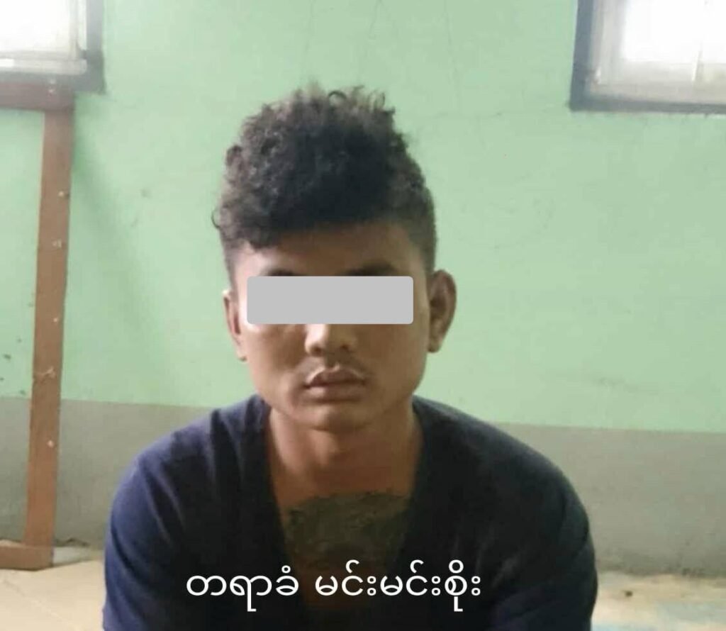 ၂၀၂၅ အောက်တိုဘာလက မင်းမင်းစိုးကို ဆောမြို့နယ် ပလဖ က ဖမ်းဆီးထားစဉ်/Photo – ဒေသခံ
