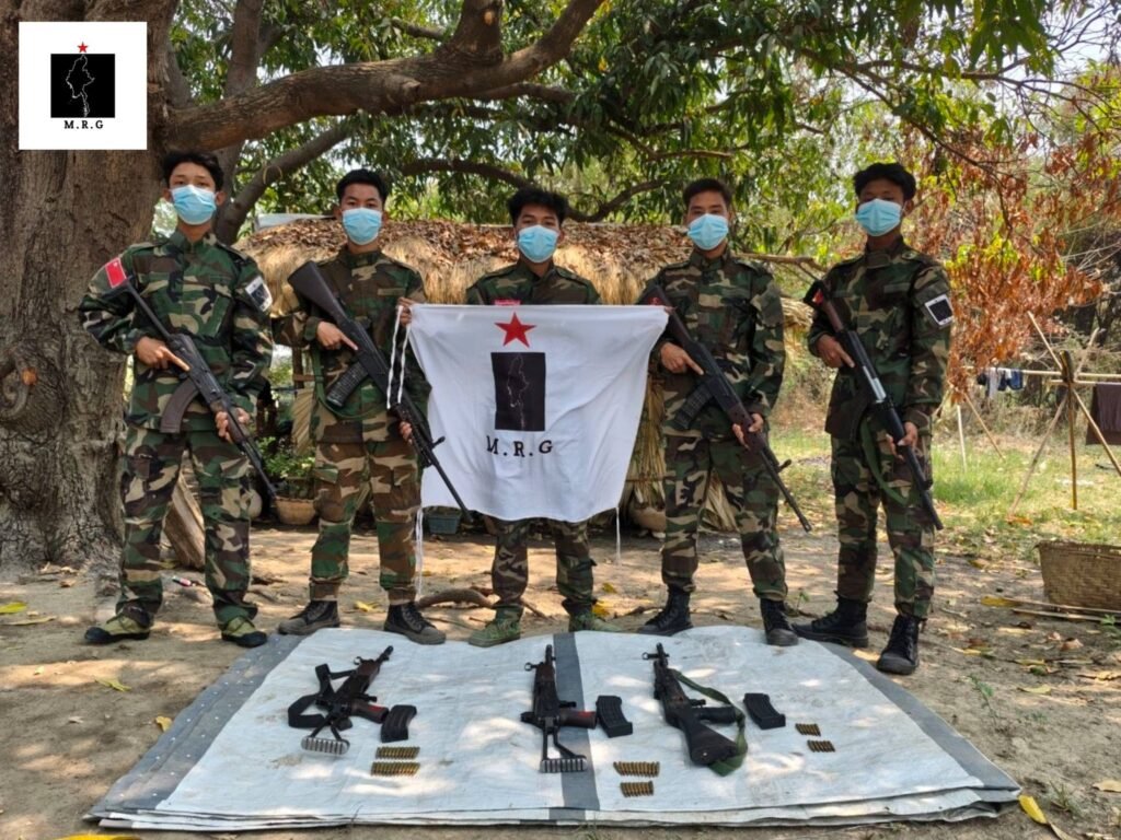 မကွေးတိုင်း၊ ပခုက္ကူမြို့၊ စက်မှုဇုန်မှာ ဂိတ်ဖွင့်ထားပြီး ပြည်သူကို လက်နက်ပြ မိုက်ကြေးခွဲ ငွေညှစ်နေတဲ့ အာဏာသိမ်း စစ်အုပ်စုကို ဧပြီ ၆ရက် မနေ့က တိုက်ခိုက်ခဲ့ရာ စစ်အုပ်စု လေးယောက် သေပြီး သေနတ် သုံးလက် သိမ်းဆည်း ရရှိတယ်လို့ ပခုက္ကူ ပြည်သူ့ကာကွယ်ရေးအဖွဲ့ တပ်ခွဲ-၂ (မြေလတ်ဒေသ ပြောက်ကျားတပ်ဖွဲ့ – M.R.G) က သတင်း ထုတ်ပြန်ပါတယ်။
