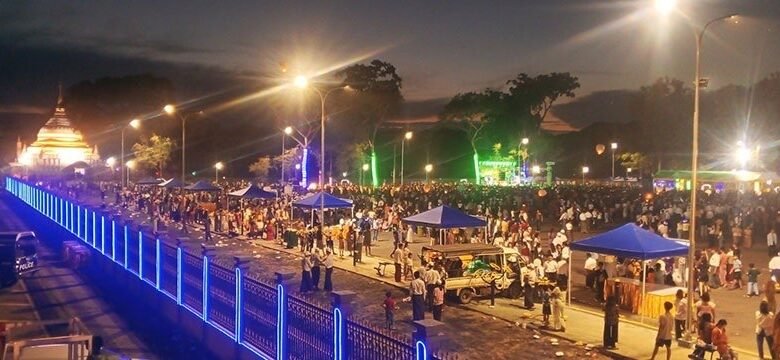သီတင်းကျွတ်လပြည့်ညက မုံရွာမြို့ပေါ်မှာ ပျော်ပွဲရွှင်ပွဲကျင်းပနေတဲ့ စစ်အုပ်စုနဲ့ ဒေသခံတွေကို တွေ့ရစဉ်။