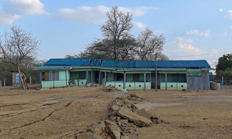 စစ်ကိုင်းငလျင်ကြောင့် သာစည်မြို့နယ်အတွင်းက အဆောက်အဦးတချို့ ထိခိုက်ပျက်စီးခဲ့ပုံ။ Photo – TSBM – The Spirit of Brotherhood Mission